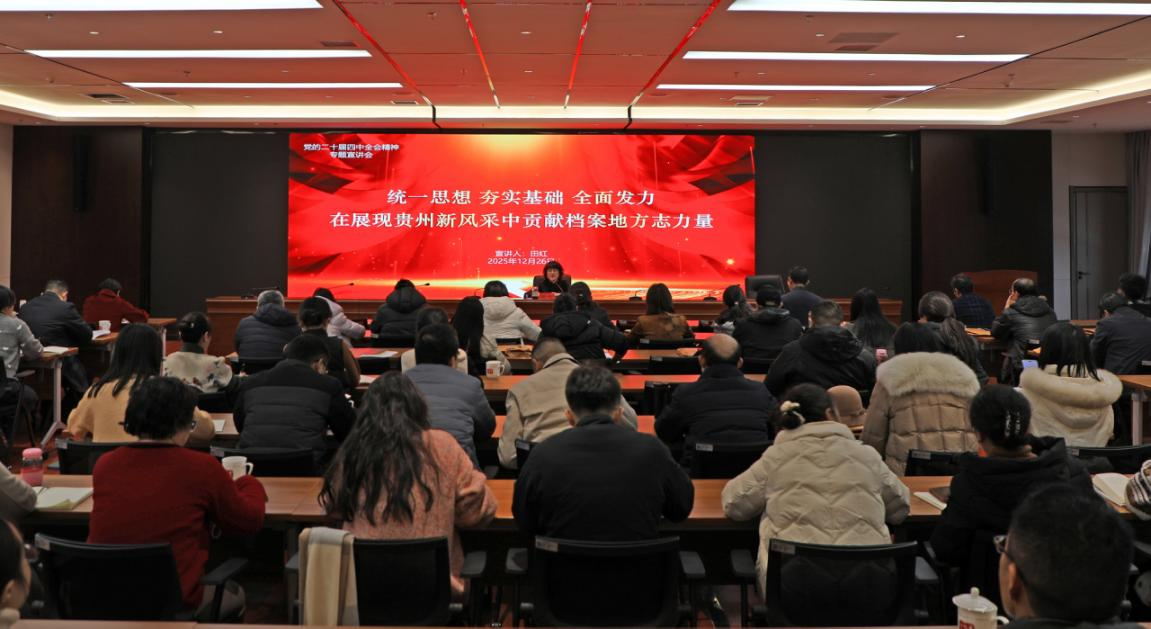 2025年12月26日,貴州省檔案館(省地方志辦)副館長(副主任)田紅向分管處(室)黨員干部宣講黨的二十屆四中全會精神。