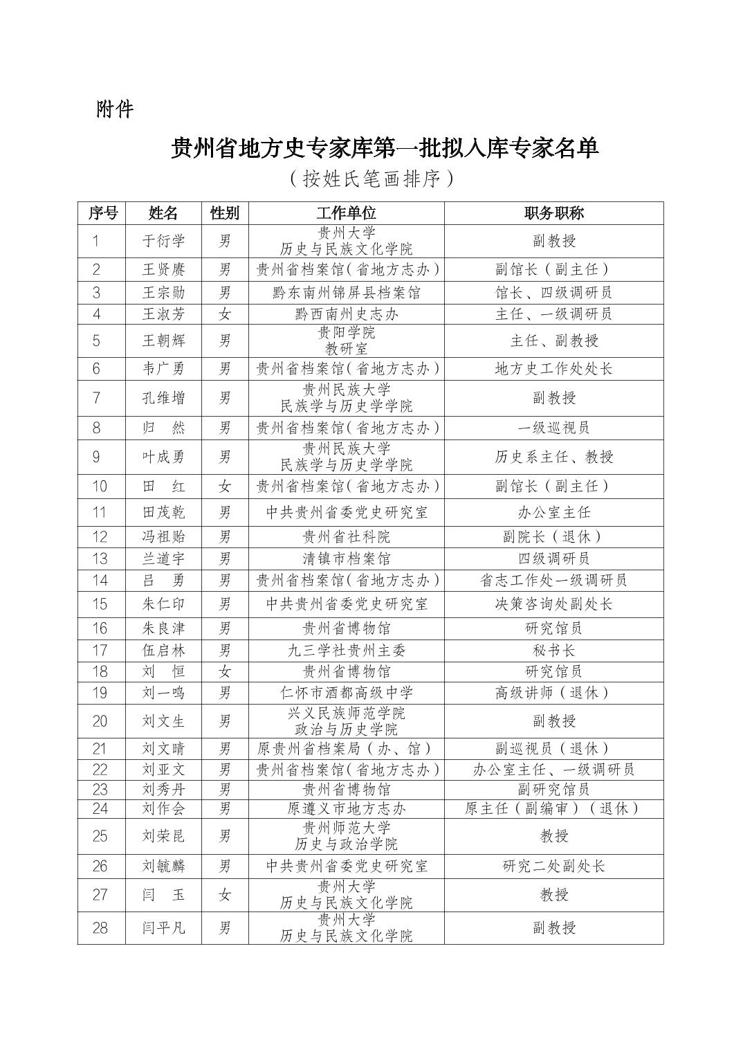 附件:《貴州省地方史專家?guī)斓谝慌鷶M入庫(kù)專家名單》