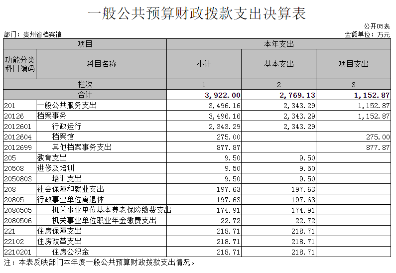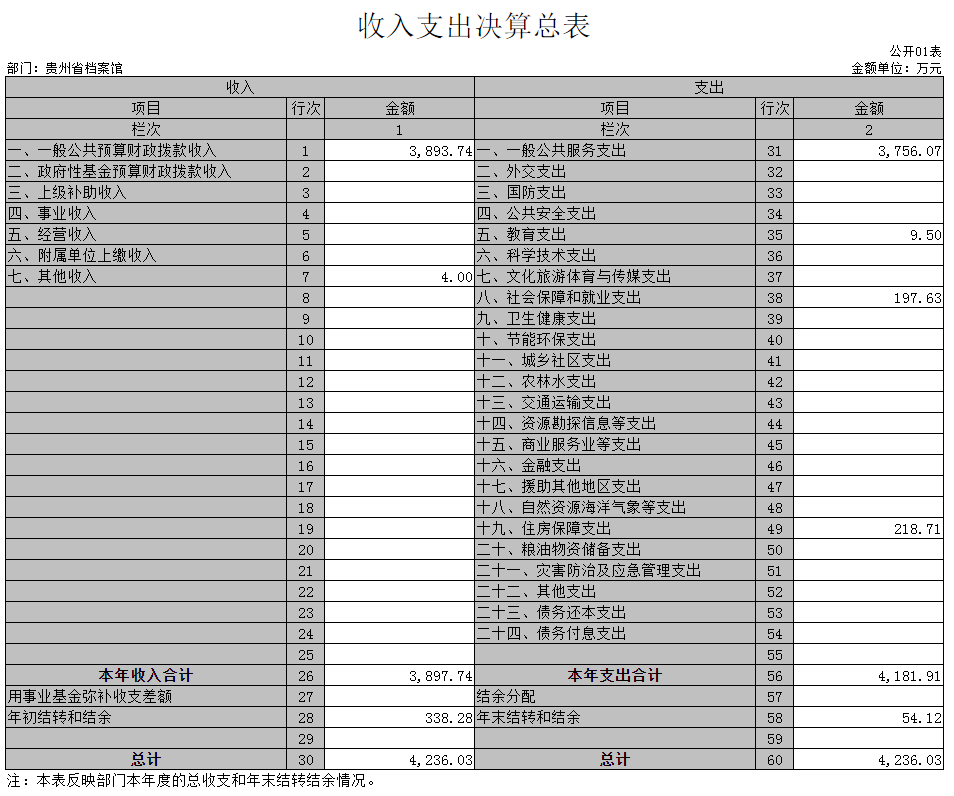 (一)貴州省檔案館2019年度收入支出決算總體情況說明