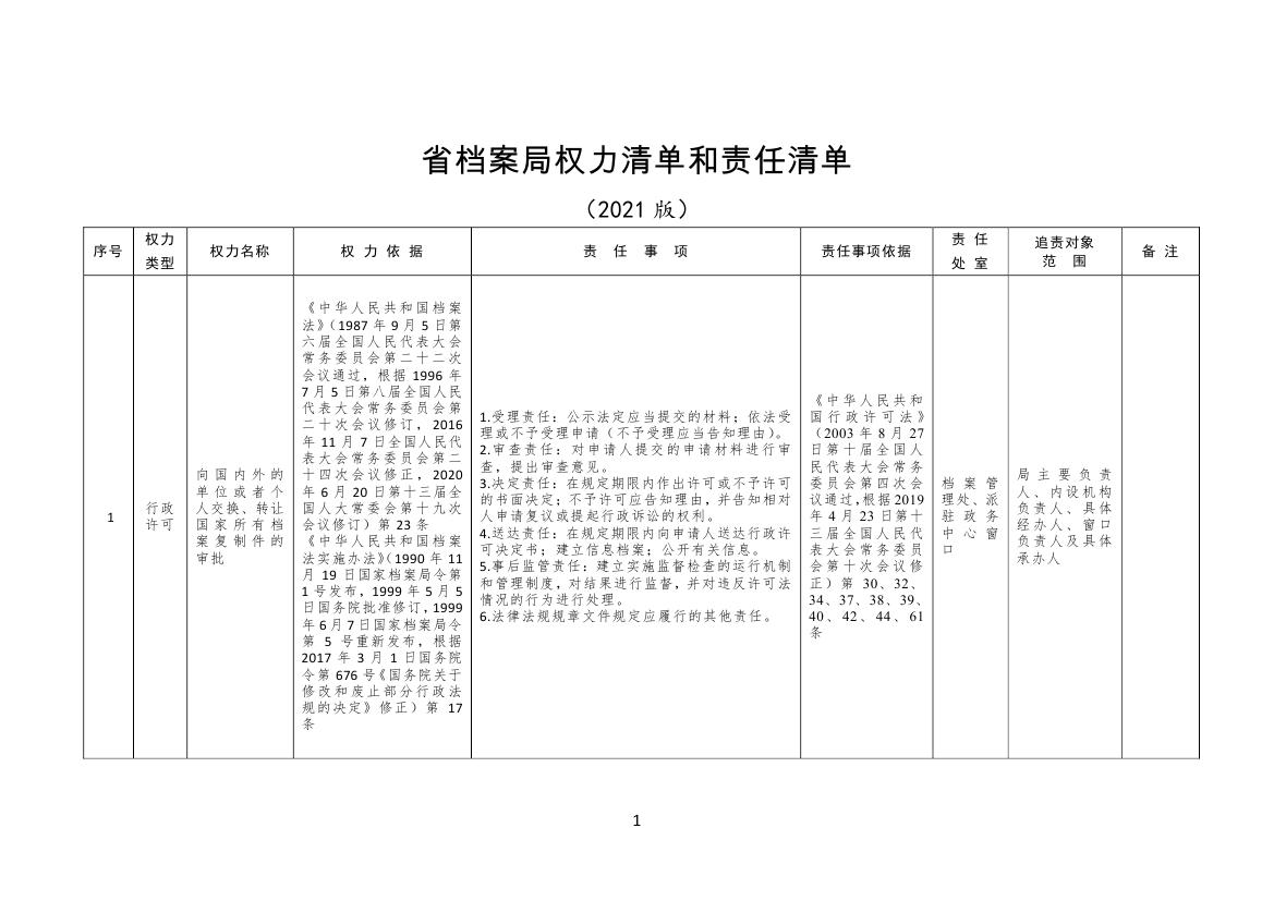省檔案局權責清單目錄(2021版).wps
